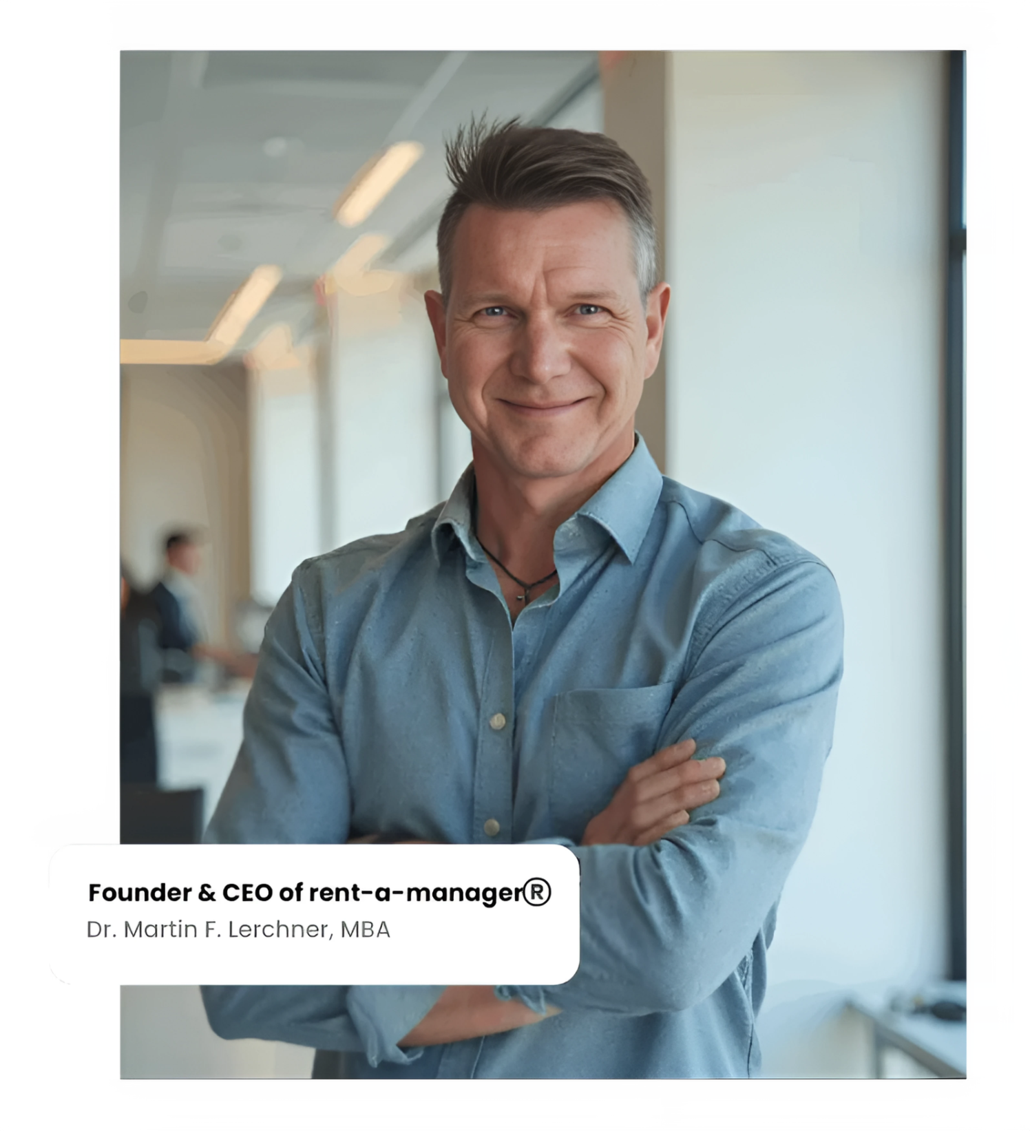 Dr. Martin Lerchner, Gründer von rent-a-manager®, ist ein mehrfach veröffentlichter Autor mit preisgekrönten Werken zu den Themen Führung und Management.